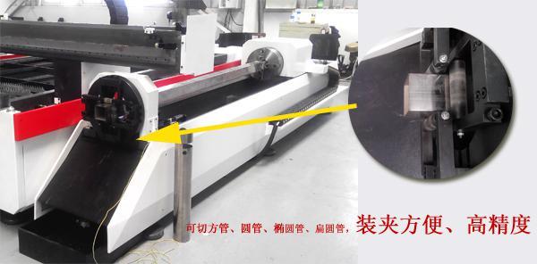 為滿足用戶進行金屬管材的相貫線切割以及鋼板的異形切割下料,我公司研發(fā)生產(chǎn)了(組合型)管板一體光纖激光切割機,原理是:將相貫線切割專用部件,配置到激光切割機工作臺的側(cè)面,來完成管材的相貫線與平面金屬板材的互換切割。其特點:當批量不大時實現(xiàn)一機多用(金屬管材及金屬板材的激光切割),從而得到一機兩用、減少了設(shè)備數(shù)量的投入和場地面積的占用。